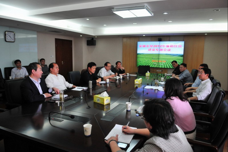 424,安徽农垦集团在合肥召开2012年廉租住房建设专题会议。集团副总经理、保障性安居工程领导小组组长刘超主持会议作讲话,领导小组成员和寿西湖、龙亢、十字铺、九连山、砀山等5个项目场领导及有关负责人参加会议,垦建公司和现代农业工程设计研究院领导列席会议。