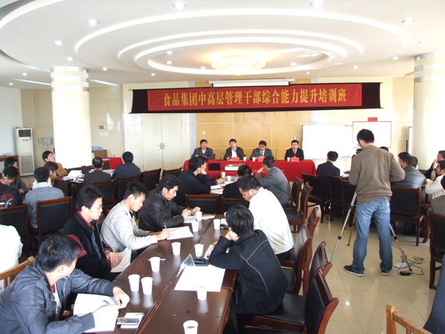 为圆满完成2010年的食品集团发展目标,认真开展学习型党组织活动,农场党委把2010年作为“干部素质提升年”,策划了系列培训计划。按照计划,从4月到10月,将举办“伯乐人才中高层管理干部综合能力提升”,“职业经理人培训的八大能力建设理论”,《激活高效人才》、《C8销售管理》等内容的培训班。邀请FTF培训机构教练、北京师范大学客座教授赵承阁,管理学博士、江苏大学教授、政府指定专家团成员周辉,北京大学人才研究中心高级研究院王俊杰,北京大学经济学院客座教授邱明俊等知名教授、专家现场授课。培训采取教授授课、观看录像、现场模拟等方式,内容实用,方式新颖。整个培训分三个阶段,历时117个学时。为达到培训效果,食品集团精心组织、策划整个培训工作,从制定方案、培训计划、课堂布置、学员确定、教学纪律、结果测试等都做了周密、详细、科学的安排,如在安排参学学员方面,集团不仅安排了中层及以上管理人员,而且还安排了统招的大学生,让新分配的大学生享受同样的培训福利。