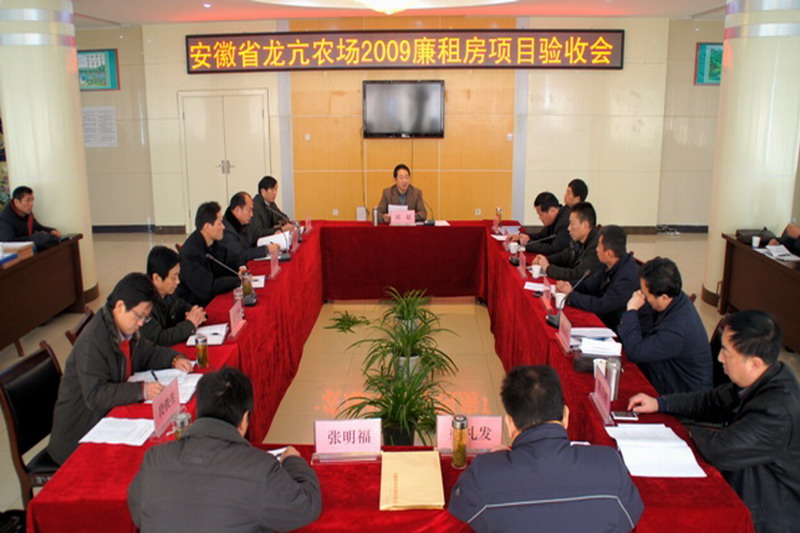 1228上午,省农垦集团副总经理刘超主持召开龙亢农场2009年廉租房项目验收会。集团公司办公室、投资发展部、社会事业部、监察室、审计室、现代农业工程设计研究院和怀远县住建局、监理施工单位负责人,皖垦食品集团董事长王国福、龙亢农场场长杨俊宇及特邀职工代表参加了验收活动。