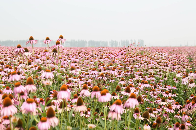 紫松果菊是菊科多年生草本植物,具有很好的园林和药用价值。农场从去年开始规模种植,今年菊园面积120多亩,不仅产量高,目前市场行情也“红得发紫”,预计亩均纯收入4000-5000元。(王家宇)