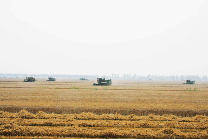 目前,安徽农垦今年40万余亩小麦已全面进入收获期,丰收已成定局。据统计,截至6月4日,全垦区共投入大中型收割机械1600余台,沿江江南农场16万余亩小麦进入了收获扫尾阶段,沿淮各农场正在展开大规模机收,全垦区小麦收获面积已近六成。针对当前天气情况,各农场正在抓住6月6日降水过程之前有利时机,迅速组织抢收和种子收储,力争颗粒归仓。